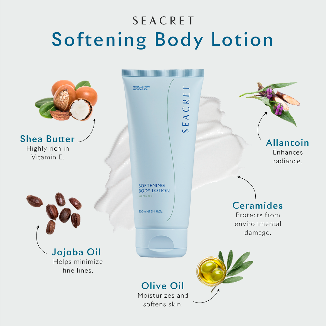 Keep your skin hydrated and nourished with Softening Body Lotion, infused with shea butter, olive oil, jojoba oil, ceramides and allantoin. Enjoy full-body nourishment with this powerful, lightweight, silky lotion.