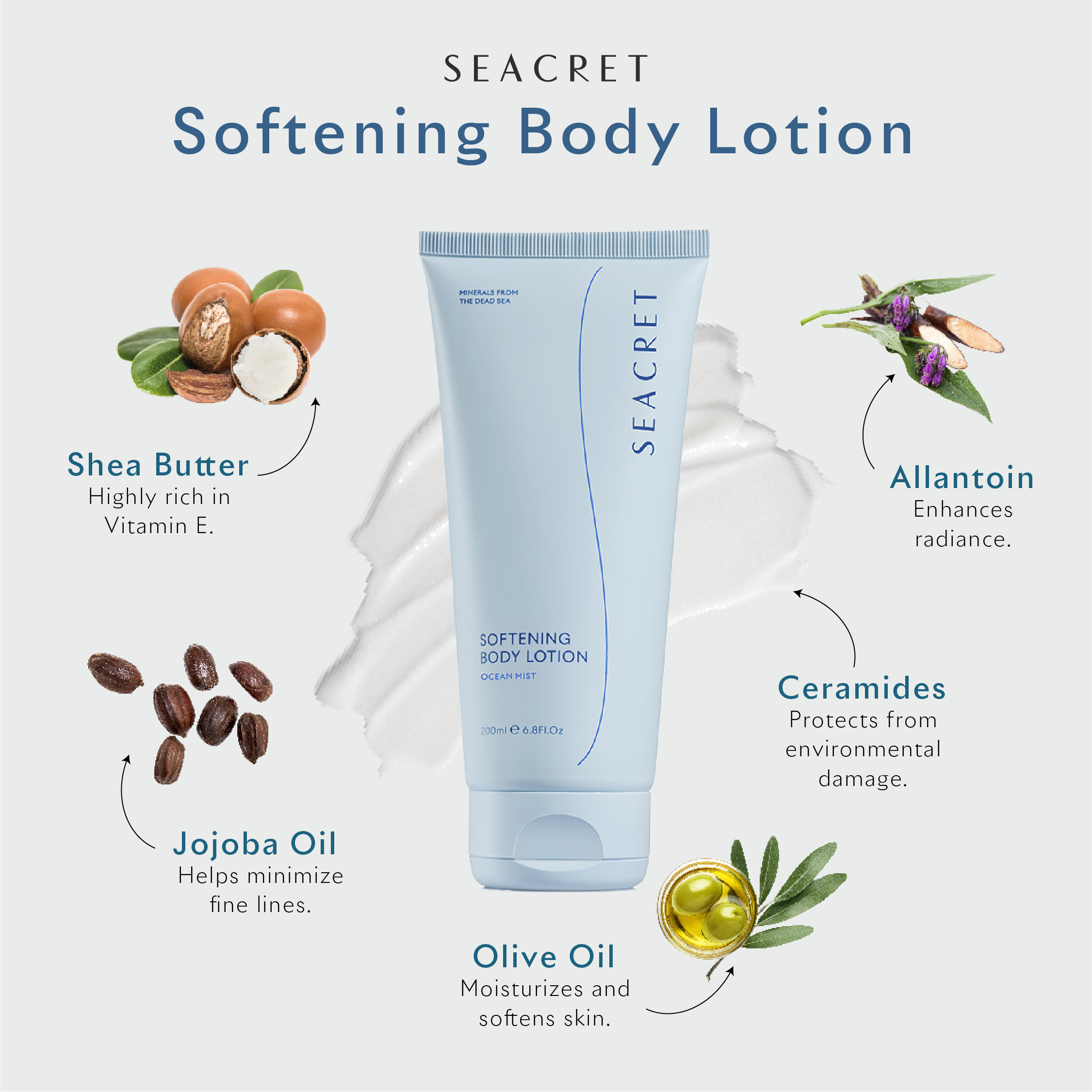 - Same nourishing body lotion texture with an enhanced Seacret Clean formula.