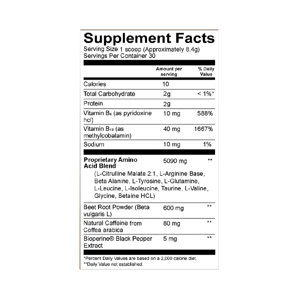 How to Use: Mix 1 scoop with 8-16 oz of water. Drink prior to or during your workout. |