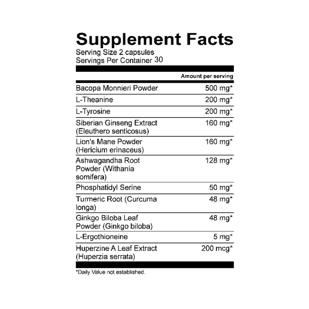 Purpose: A cognitive support supplement designed to promote mental clarity, memory, and nervous system health.